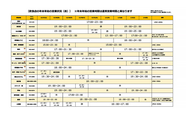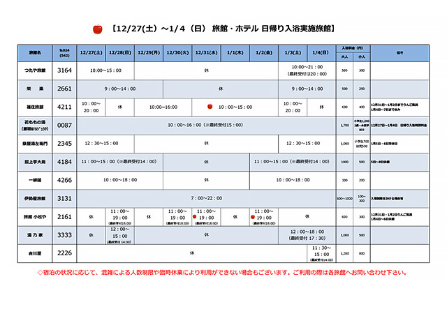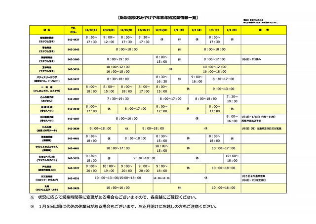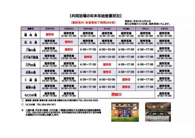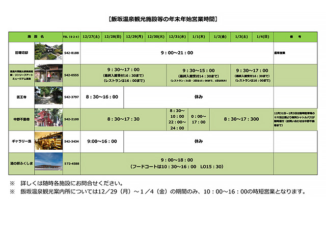 年末年始の飯坂温泉のスケジュールをお知らせします。
