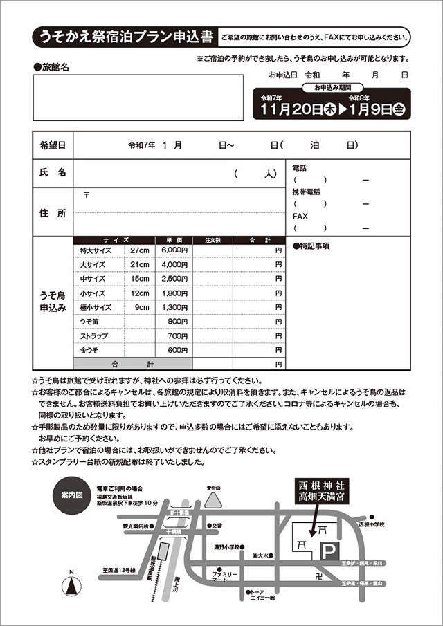 〇旅館プランとセットで「鷽鳥」が予約できる!