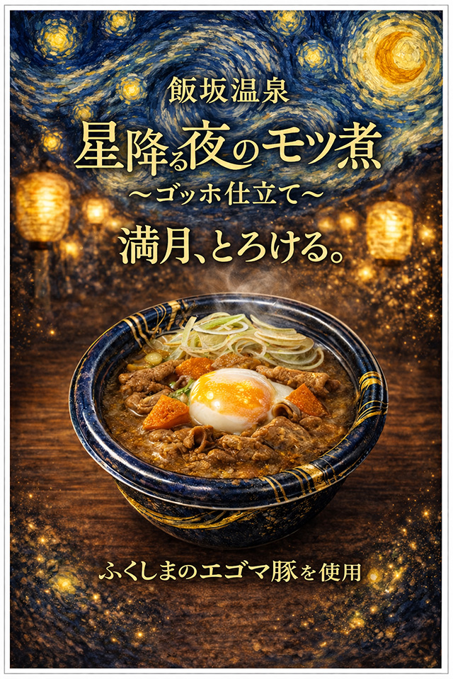 また、旅館の女将さんが考案した「ゴッホ仕立てのモツ煮」をはじめ、季節の和菓子や甘酒など、この日ならではの味覚もご用意しております。